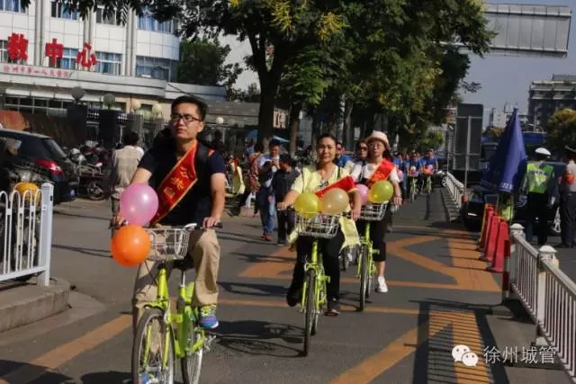 成百人騎行隊伍。在活動開展30分鐘后車隊從彭城廣場出發(fā),沿中山路騎行約40分鐘左右,騎車人員在云龍公園南門廣場結(jié)束。