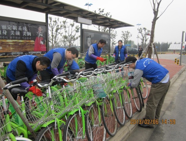 在活動(dòng)現(xiàn)場(chǎng)有些自行車需要調(diào)整零件的,懂自行車維護(hù)的同志就自告奮勇的站出來(lái)?yè)?dān)當(dāng)這個(gè)任務(wù),有些自行車需要清潔工作的,就拿起抹布認(rèn)真仔細(xì)地擦試,不一會(huì)兒工夫一個(gè)又一個(gè)站點(diǎn)在他們熟練的動(dòng)作中形成一道道美麗的風(fēng)景線。三星顯示器有限公司率先從自身做起,將環(huán)保理念深入員工帶動(dòng)市民,以實(shí)際行動(dòng)支持環(huán)保事業(yè)。
