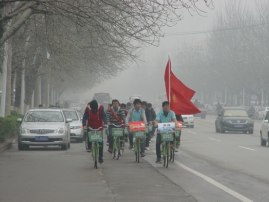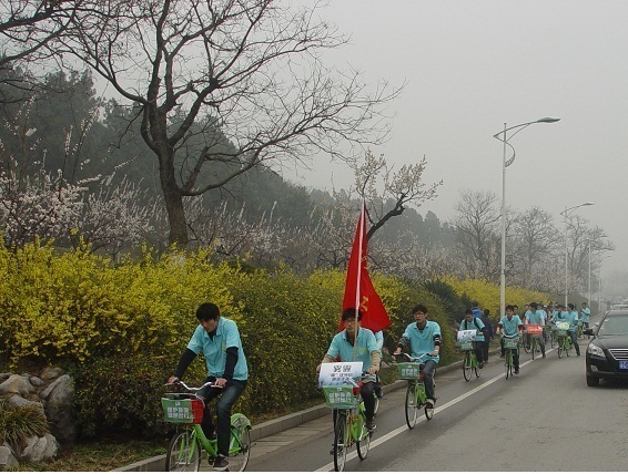 由于近一年中霧霾天氣頻繁出現(xiàn),環(huán)境污染比較嚴(yán)重,這也是近期兩會(huì)的熱點(diǎn)話(huà)題,中國(guó)礦業(yè)大學(xué)徐海學(xué)院建工系建環(huán)12-1團(tuán)支部為了積極的學(xué)習(xí)兩會(huì)精神,舉行了騎公共自行車(chē)宣傳“保護(hù)環(huán)境,綠色出行”的活動(dòng),提高人們保護(hù)環(huán)境的意識(shí),鼓勵(lì)人們多騎自行車(chē)少開(kāi)汽車(chē),最終達(dá)到減少環(huán)境污染的目的。